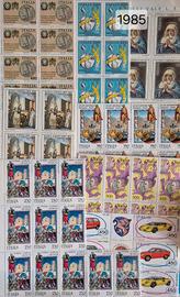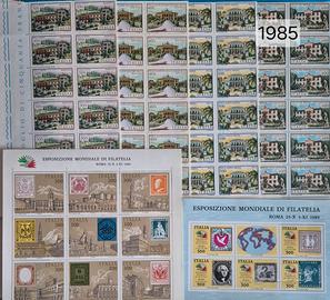 Italia Rep. Lotto franc. e foglietti nuovi 1985 scontati del 55% del facciale ( 146 € sc. 65 ). Il lotto e' composto prevalentemente di N° 14 serie, 10 foglietti (5 francobolli ciascuno) e altri 10 foglietti ( 9 francobolli ) per emissione.