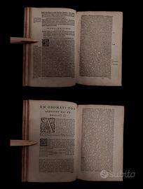 Pregiati esemplari cinquecenteschi ospitanti una pietra miliare della storia del diritto e della legge europea antica e medievale, in edizione tra le più rinomate e celebri dell'epoca, ospitanti cioè le Pandette (Digetsorum/Digesto) del Corpus iuris civlis dell'imperatore Giustiniano (534 d. C), ad opera della Ex Officina Plantiniana (Plantini), proponendo il dotto e meticoloso lavoro di Louis Roussard e François Duaren.