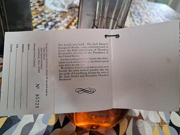 La storia di questo bourbon unico è illustrata nel libricino allegato alla confezione: Jack Daniel voleva fare una bottiglia celebrativa per Roosevelt...