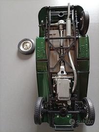 Si tratta di un modellino che avuto un vissuto e che necessita di un restauro , oppure può essere utilizzato come pezzi di ricambio . Come da foto mancano dei pezzi , un coprimozzo che regge la ruota è mancante, lo sterzo è da riparare . Detto questo.