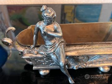 Fioriera jardiniere antica primi del novecento in metallo con vaschetta interna , circa 28 cm ,la statuetta del bimbo va saldata