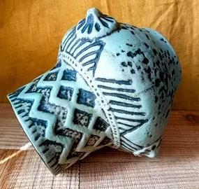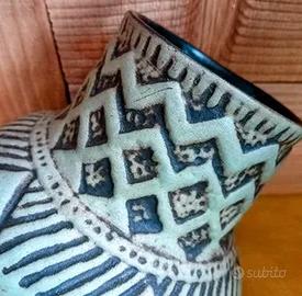 Jasba W.Germany Keramik form 155/16 Ritz decor vase. Serie "Nimrod" Antik.// Vaso da collezione anni '60 Jasba W.Germany. Modello 155/16 Serie "Nimrod" ispirata a forme e decori delle ceramiche del Medio Oriente. Tecnica Ritz Decor con linee a zig zag e tratti decisamente incisi . Forma che ricorda un'urna. Condizioni ottime Nessuna scheggiatura rottura crepa. Diametro orlo cm 9 larghezza cm 16 altezza cm 16