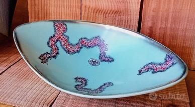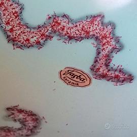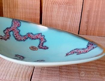 Jasba keramik 1919 30. W.Germany anni 50/60. Decoro Jaspatina, disegno astratto in nero/bordeaux sfondo verde celadon , bordo oro. Pezzo da collezione .