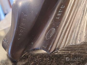 Scultura originale a tutto tondo cm 41x40x16 realizzata in bronzo presso la Fonderia d'Arte Venturi secondo il procedimento classico a “cera persa” con rifinitura a cesello, lucidatura e patinatura a fuoco e acidi eseguiti a mano.