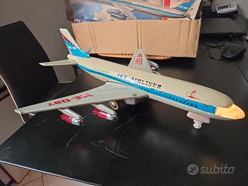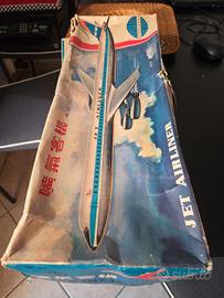 JET AIRLINER FRICTION MF 833 MADE CHINA 1983 In Latta. Ottime condizioni per l'età, funziona tutto , luce cabina. Luci motore,suono motori, gira in circolo, la luce della cabina su avvia appena aereo viene montato, il resto funziona da interruttore, la scatola presenta i segni del tempo, guardate bene le foto e se dubbi chiedete