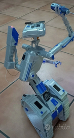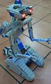 BATTERIA 12V INTERCAMBIABILE TOGLIENDO LA VITE E COPERCHIO NELLA TESTA DEL ROBOT.. LED NEGLI OCCHI, 2 NEL CORPO, UNA NEL LASER! INTERRUTTORE NELLA TESTA.