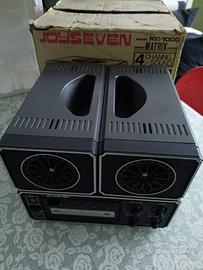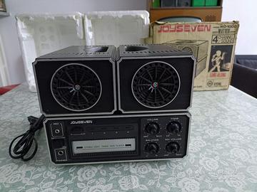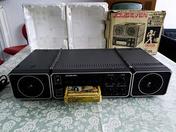 Vendo Lettore Stereo 8 fine anni '60 Made in Japan JoySeven KC-1000. Alimentazione con 8 pile LR14, alimentatore esterno a 12 volt non inclusi e cavo alimentazione a 220volt in dotazione. Funzionante viene inoltre fornito con la sua scatola originale di cartone e con polistirolo. Controlli Audio: Manopole per Volume, Tono, Balance e Mic Volume Ingressi: Jack Microfono (MIC) Chiedete per maggiori informazioni foto o video. Qualche piccolo segno del tempo, in quasi ottimo stato. In vendita sul mio profilo altri oggetti vintage come mangiadischi (Penny, Grundig, Lesa) Radio (Brionvega, Weltron, Ultravox) erap74