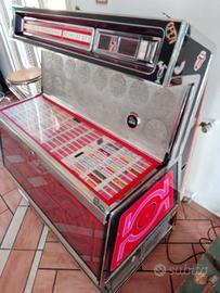 Marca Rowe Ami modello Monte Carlo. Anni 70. Carica 100 dischi. Ha sempre funzionato. Ultimamente il cestello dischi non si ferma sul disco selezionato. Per il resto funziona tutto: piatto dischi, amplificatore, selettore credito, neon. Tutto. Do anche libretto manutenzione. Vendo come non totalmente funzionante. L'acquirente deve venire di persona per il trasporto.
