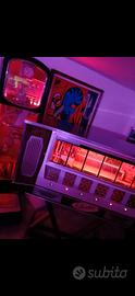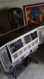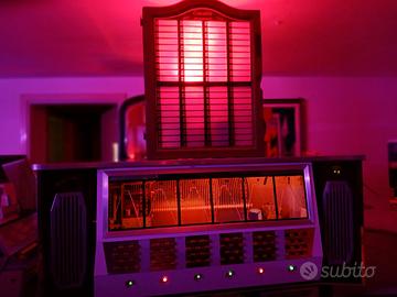 Jukebox kolumbus anno 1965 prodotto in pochissimi esemplari meccanica a vista completo di vinili 120selezioni scrupolosamente restaurato in ogni particolare ed appena revisionato da tecnico esperto del settore amplificatore valvolare rimesso a nuovo eccezionale resa acustica ( 6 altoparlanti originali ) 2200e prezzo non trattabile effettuo installazione e consegna gratuita in Piemonte e Lombardia x evitare inconvenienti nel trasporto invio video su richiesta eventuale possibilità di assistenza tecnica a richiesta. possibile scambio con seiko vespa insegna smaltata arley