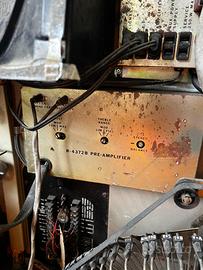 Come si può vedere, necessita di un po' di restauro. Collegato alla presa, le luci si accendono e il disco inizia a girare. Manca la puntina dalla testina del giradischi.