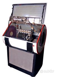 raro Jukebox Seeburg esx 100 Marauder 72 Robert O'neill design 60/'70 space age. al juke box manca la puntina ed i diffusori per il resto c'e' tutto e al accensione si sente il ronzio ma non ha funzioni quindi da rivedere. e' usato con segni d'uso. a disposizione diverse foto del interno nei dettagli dei componenti. accetto scambi