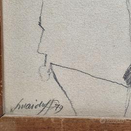 Disegno originale a matita su carta dell'artista Jules Maidoff (1933) risalente al 1979. L'opera, di dimensioni 34x49 cm (37x52 cm con cornice), è firmata e datata in basso a sinistra. In ottime condizioni generali e presentata in una cornice lignea coeva con lievi segni del tempo, offerta in omaggio insieme al disegno. Dipinto Olio su tela Quadro Opera d'arte Oil on canvas Painting Still life Landscape Portrait Framed Signed Fine Art Original painting Mid-century Antique Artwork XV XVI XVII XVIII XIX XX Secolo 400 500 600 700 800 900 Antico Oldmaster Autore Firmato Tela Vintage Arredamento Cornice legno Belle arti Impressionismo Barocco Neoclassico Realismo Espressionismo Astrattismo Materico Pittore d'epoca Collezione privata Antiquariato Modernariato Art Déco Liberty Galleria d'arte Valutazione Certificato Hand painted Masterpiece Wall decor Interni Design Luxury Rare Unico Maestri Italiani European art Canvas Art auction Provenienza Esposizione Cornice dorata Intagliata Telaio legno Pennellata Texture Vernice Restauro Conservazione Riproduzione d'autore Copia d'epoca Classicismo Vedutismo Marina Ritrattistica Sacra Mitologica Allegorica Paesaggismo Natura silente.