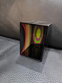 Scultura in plexiglass con specchio e stampa che creano splendido effetto ottico.