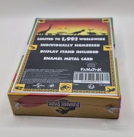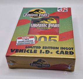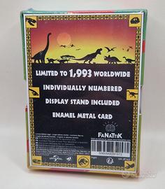 Lingotto in metallo smaltato che riproduce fedelmente la Vehicle I.D. Card (Jeep #005) del film originale del 1993. Prodotto da Fanattik per celebrare il 30° anniversario della saga. Il Prodotto in soli 1.993 esemplari in tutto il mondo (ogni pezzo è numerato individualmente sul retro).Il design riproduce il celebre badge identificativo della Jeep del parco, con il logo classico e i colori originali. L'articolo è in metallo di alta qualità con dettagli in rilievo. Ottime condizioni mai aperto.
