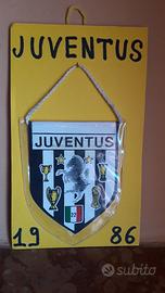 Storico Originale Gagliardetto JUVENTUS 1986 da mia collezione , con scritte su entrambi i lati, su tavoletta di legno e cartoncino giallo da CM 21,5 x CM 12,5 - il gagliardetto misura CM 12 x CM 10 con custodia in plastica e cordoncino bianco - 22 esimo scudetto con bandiera Italiana - info senza problemi - Grazie