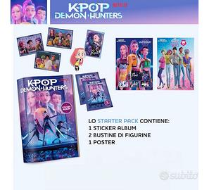 K-Pop Demon Hunters Starter Pack – Album Sticker + 2 Bustine Figurine + Poster Ufficiale, Set Collezione Fan K-Pop Nuovo sigillato