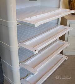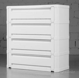 cassettiera o scarpiera componibile modello 4964 disegnata da Olaf von Bohr per Kartell negli anni '70. In ottime condizioni considerando gli anni in plastica lucida ABS con angoli arrotondati, composto da 4 moduli, ulteriormente componibile. Designer Olaf von Bohr per Kartell perfetto in ogni spazio dimensioni 71x34 altezza 76 cm