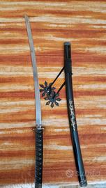 Straordinario pezzo da collezionismo. Regalo anche stellette da combattimento e supporto da muro a forma di samurai.