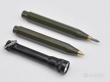 Questo set Ranger è composto da una matita e da una penna a sfera, di produzione Kaweco ma non marcate, di colore "verde bosco", inserite in una custodia da attaccare alla cintura, al giubbotto o ai pantaloni, con dentro, oltre alla penna ed alla matita, una mini-torcia, un coltello tipo "Svizzero" multilama con accessori di "sopravvivenza", ed un contenitore in plastica con mine e refill di ricambio.