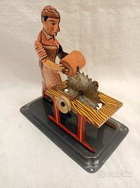 Full Body Man at the saw with steam ram, lithographed