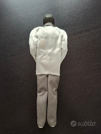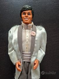 Bambola vintage di Ken (marito di Barbie) con elegante smoking argento e grigio. Abito originale completo di scarpe.