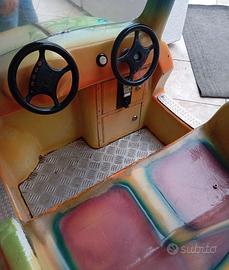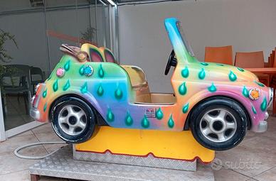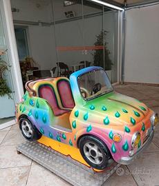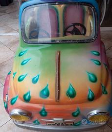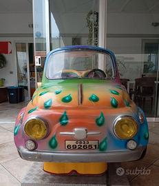 Vendesi iconico dondolante per bambini ispirato alla mitica Fiat 500 "Spiaggina". Un classico intramontabile che attira l’attenzione di grandi e piccini, perfetto sia per attività commerciali che per collezionisti di modernariato. Riproduzione Fiat 500 cabrio con seduta doppia, livrea personalizzata multicolore con dettagli a goccia (molto vivace e visibile) e scocca in vetroresina resistente, montata su base in metallo mandorlato. Predisposta per funzionamento a monete (la gettoniera è inclusa e funzionante). Dimensioni: Compatta, ideale per ingressi, parchi gioco, associazioni o come pezzo d’arredo per loft, officine creative o showroom che cercano un tocco "Pop" e originale. L'articolo si presenta in buone condizioni estetiche, il motore gira bene e la musica/suoni funzionano Disponibile per qualsiasi prova o visione dal vivo.