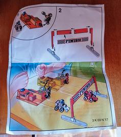 Due piloti su macchinine, due postazioni di partenza con omini starter, un traguardo. Con cartina