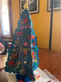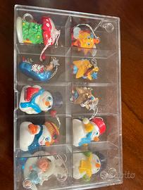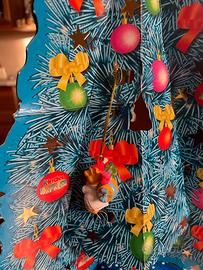 Due alberi di Natale della Kinder con pendoli e casetta anno 2000 e pendolotti