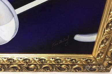 Dipinto ad olio, dripping. puntafeltro, tecnica propria, su tela cm. 40 x 50