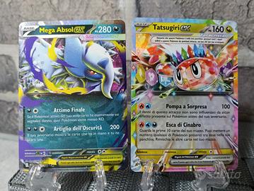 Bellissimo kit con oltre 120 carte pokemon , tutte originali , in lingua italiana e in condizioni praticamente pari al nuovo . Carte serie scarlatto e violetto e megaevoluzioni. Ottima soluzione per chi vuol fare un bel regalo a nipoti e figli ma non vuole fare un mutuo in banca per acquistare bustine in edicole e negozi a caccia delle carte rare ! Qualità e quantità per chi vuole collezionare , giocare o scambiare con gli amici ! COMPOSIZIONE DEL KIT : - 100 carte miste - 3 carte olografiche rare - 18 carte olografiche reverse - 1 carta speciale ultra rara di mega absol ex - 1 carta speciale ultra rara di tatsugiri ex teracrista ! - Regalo 20 energie da gioco 🏴Lingua italiana ✨ Condizioni : come nuovo 📦Pacco ben protetto 🚀 Spedizione veloce con servizio Tuttosubito ✅ oltre 460 recensioni a 5 stelle ! Una garanzia