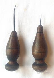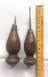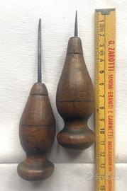 Splendido set di cinque antichi strumenti da lavoro autentici da calzolaio. Un pezzo di storia dell'artigianato, perfetto per collezionisti, amanti dello stile industrial o per chi cerca oggetti d'arredamento unici e ricchi di fascino. Il set comprende gli oggetti visibili in foto: 2 Lesine professionali con manico in legno sagomato ed ergonomico (una dritta e una curva, come da tradizione). 2 Pinze tiracuoio in ferro battuto, robuste e massicce, con becchi zigrinati per una presa salda sulla pelle. 1 Punzone antico con gambo tondo in ferro massiccio. Dettagli: Materiali: Ferro e legno forgiati e lavorati a mano. Condizioni: Ottime condizioni vintage, con la loro patina originale che ne testimonia l'età e l'utilizzo autentico. Perfettamente integri, solidi e funzionanti (come visibile nelle foto). Utilizzo: Ideale come oggetto da esposizione, pezzo da collezione, decorazione per botteghe, studi o per gli appassionati del fai-da-te su cuoio. ⚠️ Disponibile per la vendita sia in lotto completo (prezzo speciale) che singolarmente. Contattami per un'offerta personalizzata se ti interessa solo un pezzo.