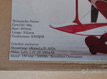Non è il solito giocattolo in polistirolo, ma un vero aeromodello in balsa e compensato con taglio LASER di altissima precisione. Scatola aperta solo per le foto, contenuto intonso con legni, tondini in carbonio, accessori e manuale originali.