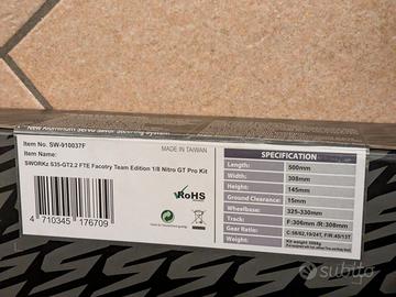 Potete trovare le specifiche e il manuale sul sito ufficiale SWORKz (cercando "SWORKz.com S35-GT2.2 FTE Factory Team Edition 1/8 Nitro Pro Kit SW-910037F"). Scusate, purtroppo non è permesso inserire link esterni.