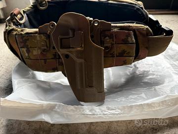 Vendo setup tattico (Battle Belt) completo, ideale per Softair, simulazioni o uso professionale. Il materiale è usato ma in ottime condizioni generali, con accessori di marche leader nel settore come Defcon 5 e SBB Tactical. Dettaglio dei componenti e prezzi singoli: • Cinturone Imbottito Defcon 5 (Vegetato) – 25€ Sistema MOLLE per configurazione libera, fibbia a sgancio rapido e anelli a D. • Inclusi : Bradelle • Nota: Presenta una piccola lesione sulla fodera interna che non influisce minimamente sulla robustezza o sull'utilizzo (vedi foto dettaglio). • Fondina Rigida Beretta M92 (Tan) – 15€ Modello a estrazione rapida specifico per serie Beretta 92 / M9. • Inclusi nel prezzo: Kit completo di adattatori (supporto da cintura e paddle/cosciale) ancora in confezione originale. • Dump Pouch SBB Tactical (Vegetato) – 10€ Tasca di recupero caricatori esausti, richiudibile a rullo. Marchio SBB, garanzia di resistenza. • Tasca Utility Media (Coyote) – 10€ Ampio scomparto con cerniera e pannello in velcro frontale per l'applicazione di patch o identificativi. Offerta Bundle (TUTTO COMPRESO) Se prendi il kit completo come in foto, il prezzo è scontato a: 50,00 €