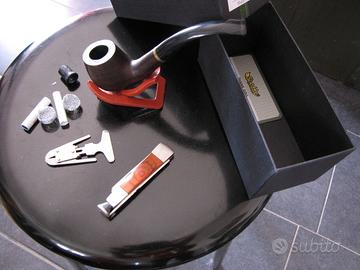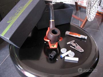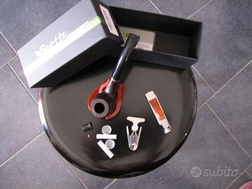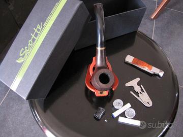 Vendo Pipa Scotte in legno per inutilizzo, completa di tutti gli accessori. 3 filtri, 3 scovolini per pulirla, ed altri utensili vari annessi per la sua manutenzione praticamente nuova in quanto provata solo una volta. No spedizione, consegna a mano di persona. Inclusa ovviamente la scatola ed un fodero in tessuto per riporre la pipa e portarla con se che non è visibile in foto.