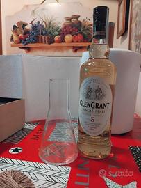 Vendo , per collezionisti, kit di degustazione, composto da bottiglia WHISKY GLEN GRANT, 5 anni, ancora sigillata, caraffa e 4 sottobicchieri in cuoio
