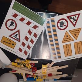 Set in miniatura a tema cantiere per lo gnomo di Natale. Il kit include segnaletica (mini coni stradali, cartelli e barriere stradali) e accessori da lavoro (cavalletti, cartelli con scritte come "Hier entsteht eine Wichteltür" - "Qui sta nascendo una porta dello gnomo"). È un modo creativo per costruire, realizzare un piccolo cantiere con la fantasia. Bello sia per grandi che per bambini, collezionisti e appassionati di modellismo. Disponibili anche più confezioni per scolaresche e collezionisti.