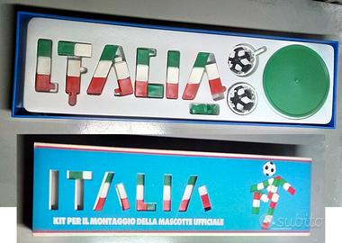 Disponibili vari kit mascotte Ciao Italia 90 prodotti ufficiali Cavicchi e Bertoni(spilla) per il mondiale di calcio disputato in Italia nel 1990 . Tutti i prodotti sono fondi di magazzino e non riproduzioni .
