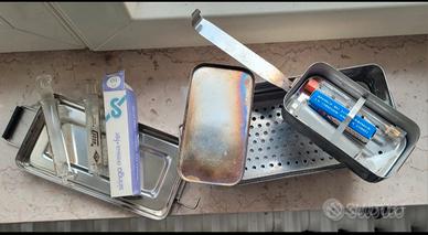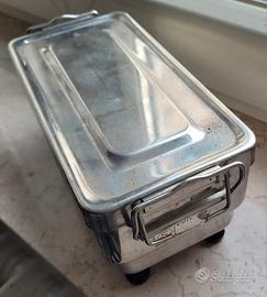 Kit Medico Sterilizzazione Militare in acciaio comprensivo di 3 siringhe in vetro, di cui una con scatola, 3 aghi di cui uno in scatola.