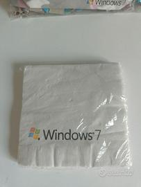 Rarissimo cimelio informatico del 2009. Kit ufficiale Microsoft per il lancio di Windows 7. Il set comprende: 1 Puzzle originale ancora sigillato nel cellophane. 1 Confezione di tovaglioli logati Windows 7 (mai aperta). 5 Buste regalo coordinate originali del kit. Condizioni da fondo di magazzino, perfetto per esposizione o collezione tech.
