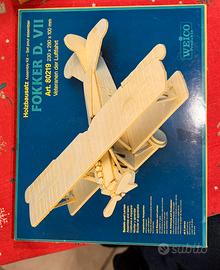 kit di montaggio in legno (Holzbausatz) della marca WEICO, modello Fokker D. VII. L'articolo è nuovo, ancora nella sua confezione originale sigillata.