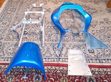 vendo pezzo raro da collezione kit artigianale kit trasformazione codone Triumph Speed Triple 955 a Mv Agusta F4 composto da telaio posteriore, codone MV , faro post , guscio monoposto e placca sotto sella. per Speed Triple dal 97 al 2001 si possono montare pedaline passeggero e selle di serie Triumph su questo kit. in buono stato ma da riverniciare! unico! 100 euro prezzo svuota garage non spedisco solo ritiro no perditempo