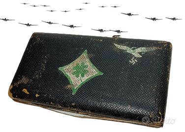 Kit di navigazione dell'aeronautica militare tedesca della Luftwaffe , Germania terzo Reich . Il kit era in dotazione per il co-pilota per stabilire la rotta di navigazione per un probabile bombardamento nelle posizione nemici . Come se vede nelle foto , nel kit manca la bussola e alcune articoli , ma la cosa più interessante e l'aspetto del box e la presenza di 8 articoli dal quale il metro che riporta ancora il sigillo del terzo reich . Il box e di metallo ricoperto di pelle che riporta il simbolo della Luftwaffe e l'aquila tedesca del regime nazista . Misura : 20 cm x 10 cm Disponibile + foto per chi interessato Articolo molto raro .