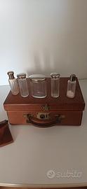 kit Toilette da viaggio valigia in pelle con flaconi in vetro