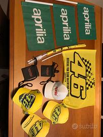 Kit comprensivo di : 3 Bandiere Aprilia 2 Bandiere Fan Club Valentino 2 Portachiavi Honda 1 Berretto Aprilia 3 Berretti Fan Club Valentino