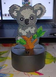Delizioso koala realizzato con la tecnica del diamond painting, completo di base luminosa.