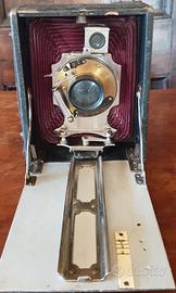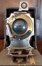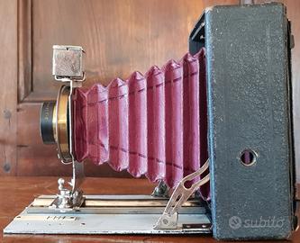 Kodak Eastman No.3°A FPK Apparecchio fotografico pieghevole, a soffietto, con lastra Modello: No.3 Folding Pocket Kodak Camera Eastman Kodak Company Rochester, N.Y. USA 1903 Macchina fotografica con soffietto in pelle bordeaux Obiettivo Bausch and Lomb, otturatore automatico F.P.K. Custodia in metallo con maniglia,rivestimento in pelle, finiture in ottone/cromo . misure chiusa : 15x12x6 aperta:19x15x12 cm Oggetto d’epoca da collezione Condizioni come da foto