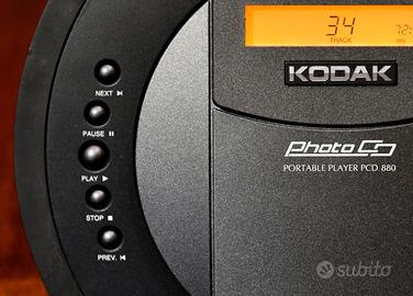 KODAK PCD 880 lettore di CD e di photo CD. Un raro pezzo di storia per fini intenditori. Funzionante perfettamente ed esteticamente perfetto. Macchina di punta dei primi anni novanta, nata in collaborazione con la Philips per il settore audio/video. In quegli anni, prima che arrivassero i primi masterizzatori per PC, la memorizzazione delle fotografie in formato digitale era ad esclusivo uso del fotografo professionista, dati gli alti costi delle apparecchiature impiegate.