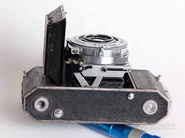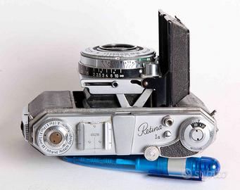 FOTOCAMERA KODAK RETINA 1 A MADE IN GERMANY DEI PRIMI ANNI CINQUANTA. PIUTTOSTO VISSUTA ESTETICAMENTE HA LA SUA CUSTODIA ORIGINALE ED E' FUNZIONANTE. GHIERA MF FLUIDA LAMELLE IN ORDINE LENTI TRASPARENTI E TEMPI CHE SUONANO BENE.