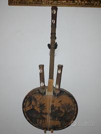 Molto bello con attaco su parete pezzo molto particolare raro con rilievi in legno intarziati e pittura a mano su cuoio vedi come da foto allegate misure 70x30 cm